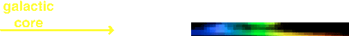 Here are the spectra, one taken inside the rectangle at each location indicated. The bluer the color, the faster those stars are moving toward us and the redder the color, the faster those stars are moving away from us.